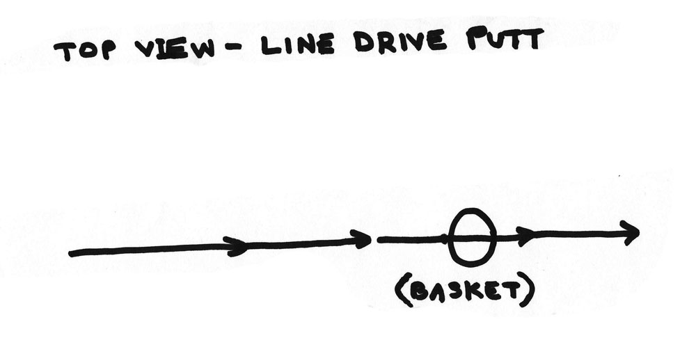 The arc should be a combination of up-and-down (like shooting a basketball) and side to side. The result should be putts that are dropping and curling as they approach the basket as opposed to charging by like a train ignoring one of its stops.
